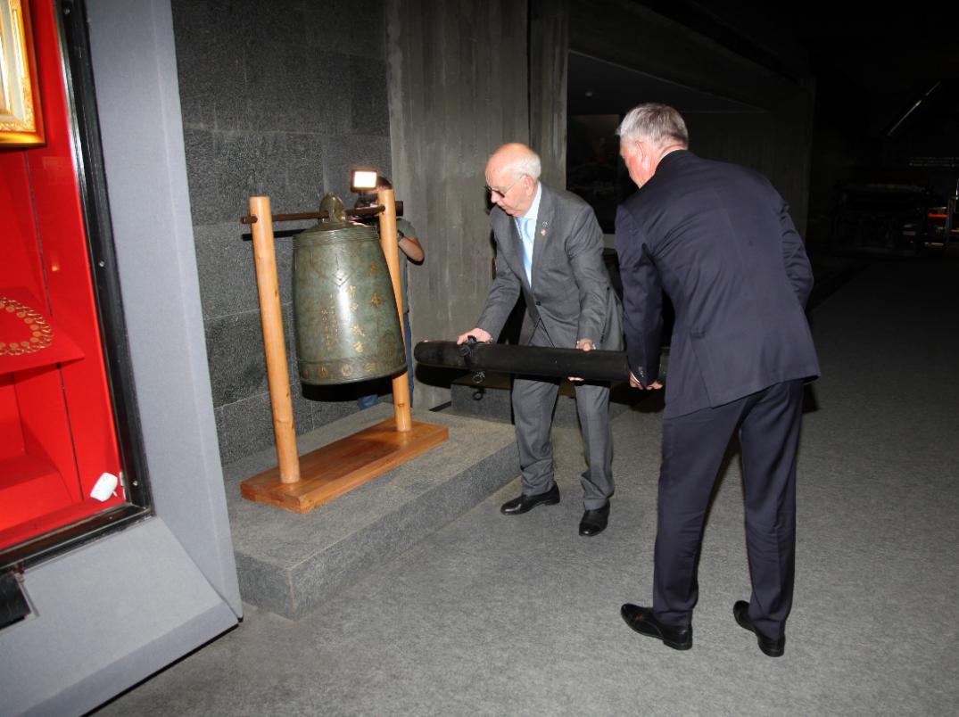 В 08:15 утра Колокол мира возвестил минуту молчания. После неё участники мемориальной церемонии произнесли краткие речи и возложили к подножью колокола живые цветы.