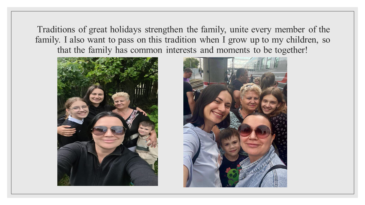 Traditions of great holidays strengthen the family, unite every member of the family. I also want to pass on this tradition when I grow up to my children, so that the family has common interests and moments to be together!