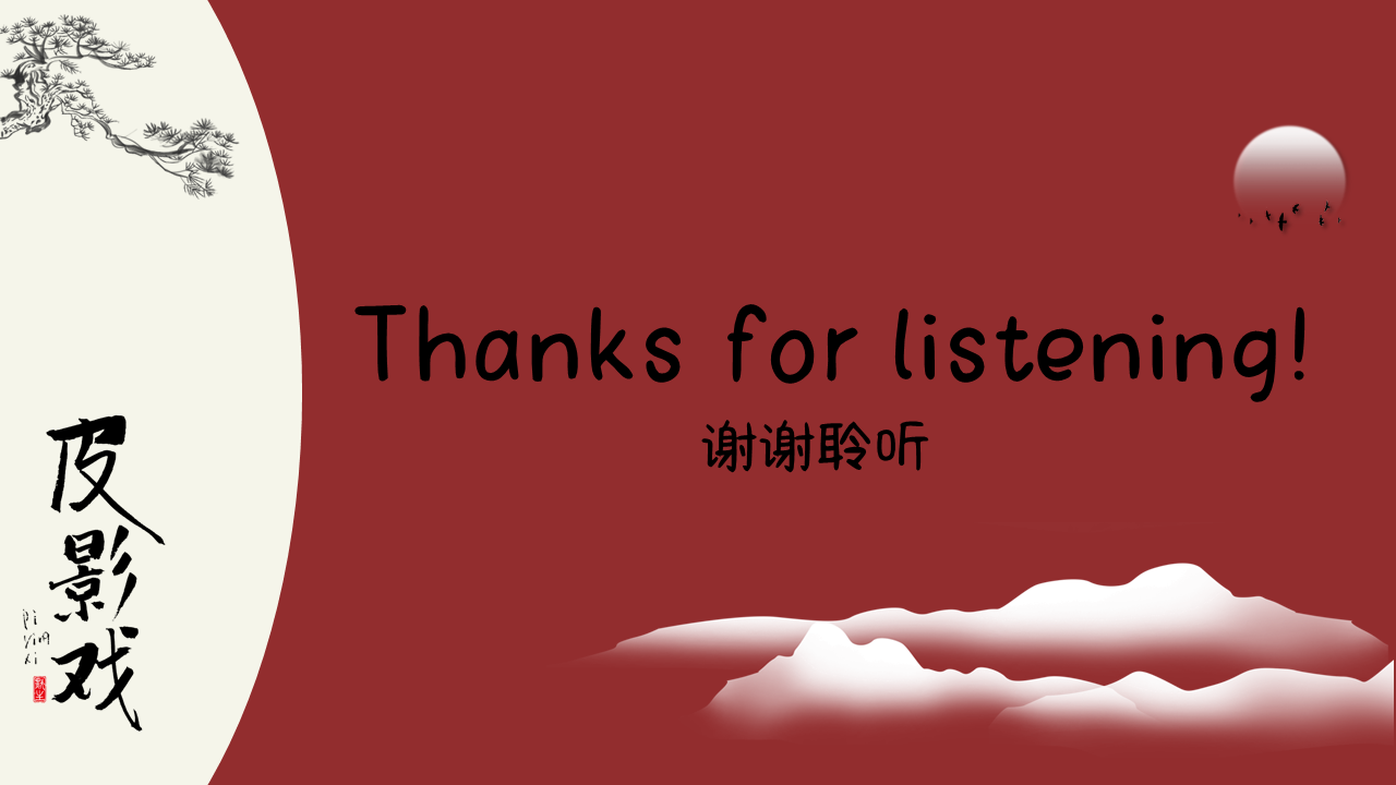 Shadow plays are infused with ingenuity, simplicity, tradition and fashion. Artists carry forward the culture from generation to generation. Because of love, to practice skilled skills; Because of love, just play deeply moving. Let us jointly protect this cultural classic – shadow play!