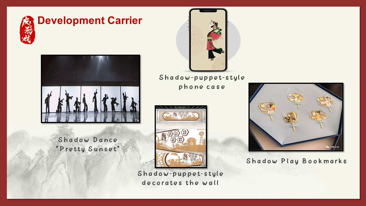 The improved shadow play shines by carriers such as dancing, phone covers, screens, lamps and tableware. These modern items combining intangible culture are real arts. Elegant and unique, they set the trend. They enrich our lives and help us acquire a better taste for arts. The shadow play in the Spring Festival Gala in 2006 once became a modern art which attracted people of all ages.