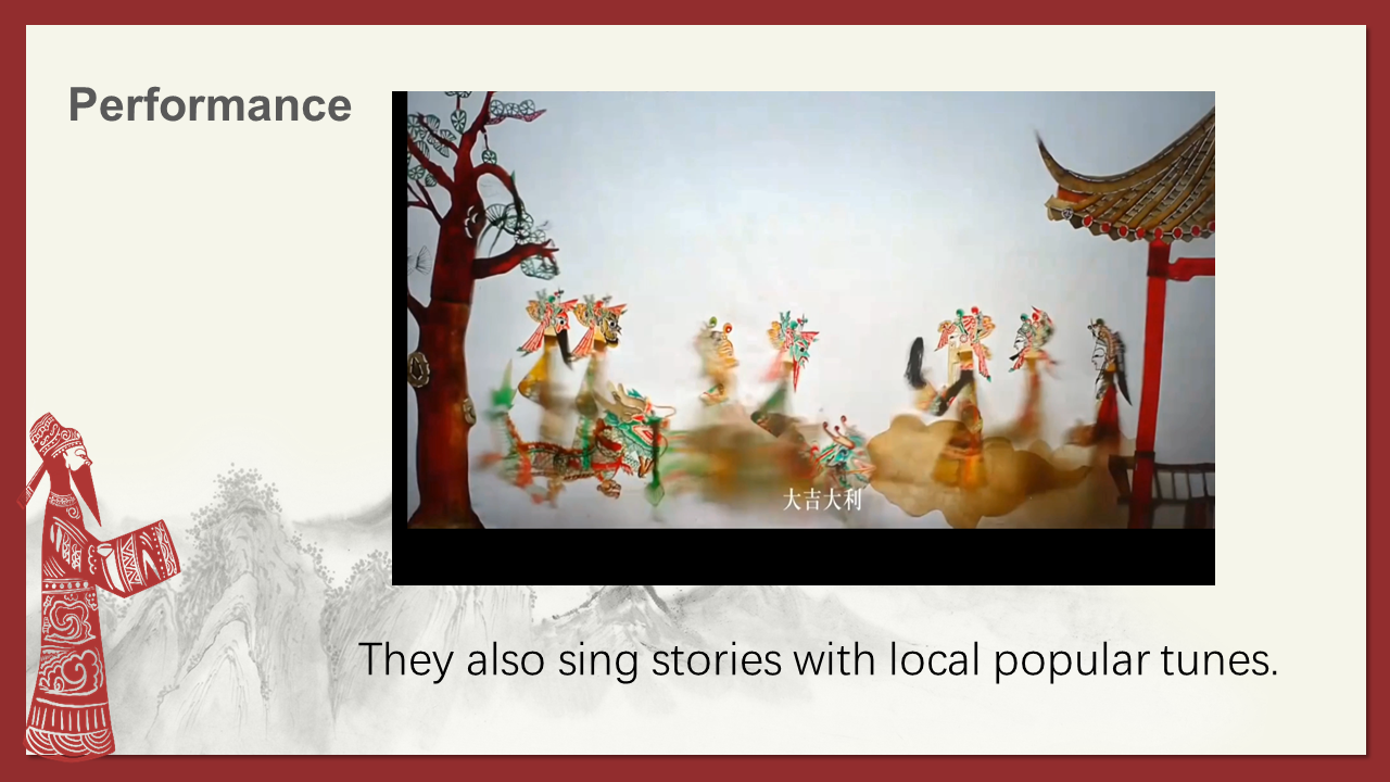 Full developed in Song Dynasty, shadow play finally reached its peak in Qing Dynasty. In the last several decades, it almost disappeared as TV series and movies attracting more audience. But now, with modifying and improvement made by these performers, it comes back.