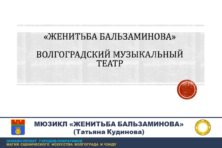 Представляем вам следующую участницу онлайн-проекта «Магия сценического искусства Волгограда и Чэнду». Презентацию об одном, без преувеличения, культовых спектаклей Волгоградского музыкального театра подготовила: Трушлякова Екатерина, студентка гр. БЭП-1 Волгоградской консерватории им. П.А. Серебрякова.