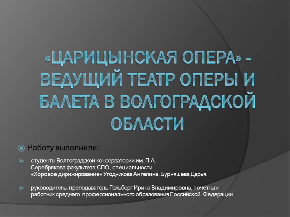Презентацию подготовили: Ангелина Угодникова, Дарья Бурняшева студенты Волгоградской консерватории им. П.А. Серебрякова, факультета СПО, специальности «Хоровое дирижирование».