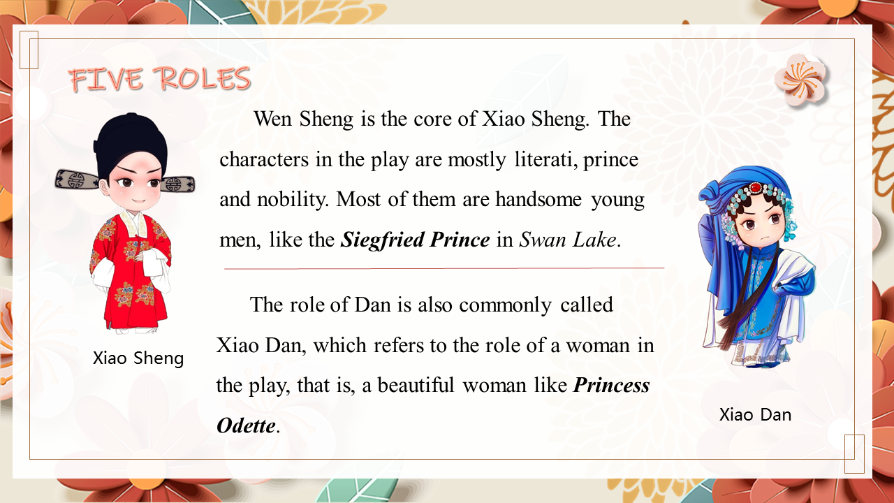 В стиле Сяошэнь играют актеры с амплуа "вэньшэнь": образованные люди, принцы и знатные господа. Большинство из них – красивые молодые мужчины, как принц Зигфрид из "Лебединого озера".