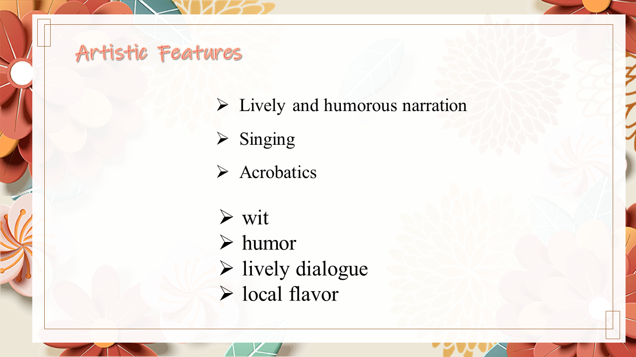 Сычуаньская опера отличается динамичным повествованием с элементами комедии, пения и акробатики. Каждая постановка полна шуток, оживленных диалогов и неповторимого колорита.