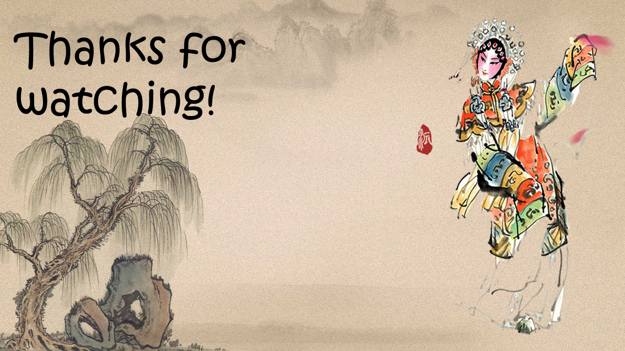 Last but not least, this work not only absorbs the advantages of other art forms, but also promotes the culture of traditional Chinese opera and traditional Chinese food culture.