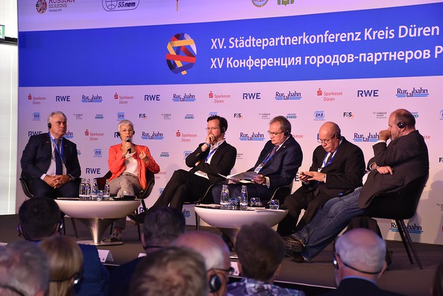 26 июня члены делегации побывали на подиумной дискуссии «Российско-германские отношения: quo vadis?», а также присоединились к рабочей группе «Гражданское общество формирует партнерства городов: пути взаимопонимания – пути к миру» в качестве экспертов обсуждения «Сотрудничество гражданских обществ городов-партнеров. Возможности и границы народной и муниципальной дипломатии» , где А.В.Косолапов и Ю.Ф.Староватых выступили с докладами о работе Волгограда в сфере общественной дипломатии и значении 2019 года для международного движения породненных городов.