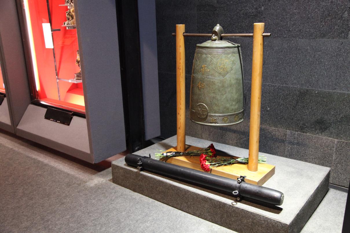 В 08:15 утра Колокол мира возвестил минуту молчания. После неё участники мемориальной церемонии произнесли краткие речи и возложили к подножью колокола живые цветы.