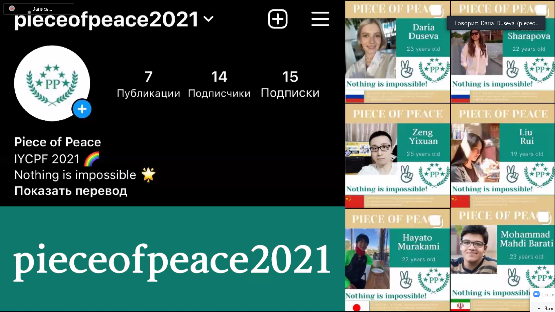 4 августа прошла 2-я онлайн-встреча Международной молодежной конференции за мирное будущее 2021. Её участников ждали представление команд, лекция от эксперта из музея-панорамы и подготовка к Церемонии мира.