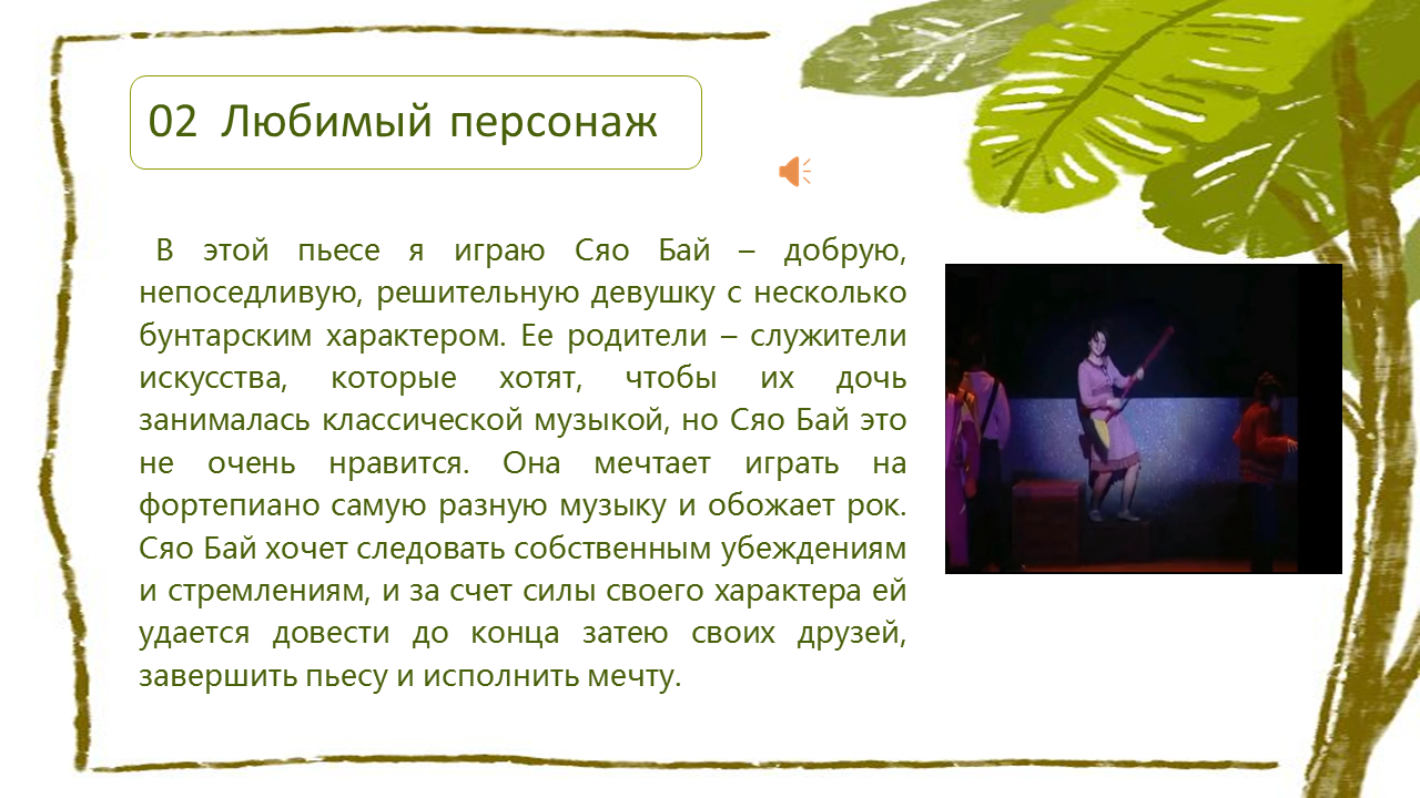 Today, the project "Magic of Performing Art" by Volgograd and Chengdu is continued by a presentation by Li Xiaoman, a senior at the School of Drama, Sichuan Conservatory of Music.