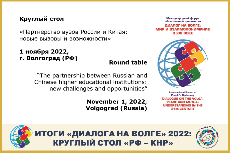 Утром 1 ноября 2022 года в рамках Международного форума общественной дипломатии "Диалог на Волге: мир и взаимопонимание в XXI веке" состоялся круглый стол "Партнерство вузов России и Китая: новые вызовы и возможности".